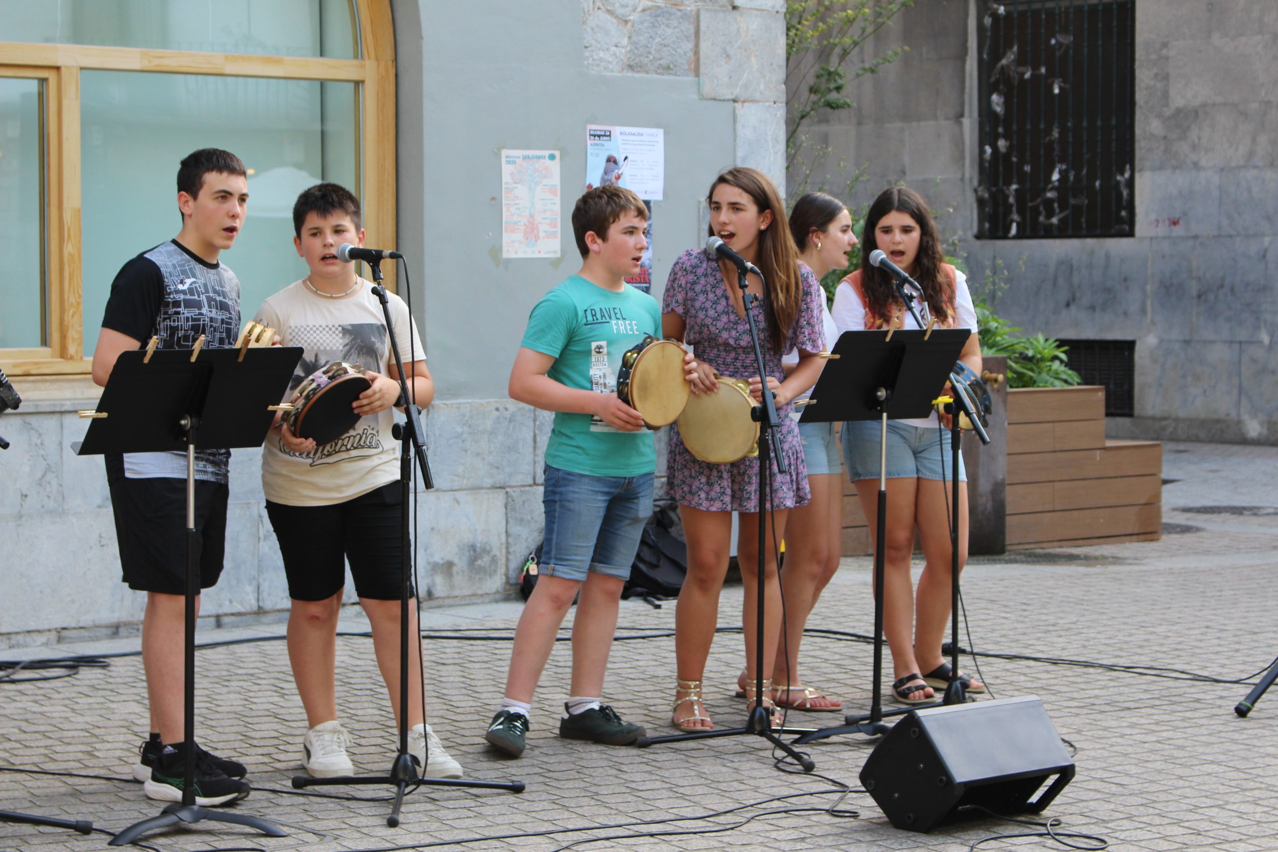 Juan Antxieta musika eskolako ikasleek ikasturtea amaitutzat eman dute. Gaur arratsaldean, Ostiral Musikatuak egitasmoaren barruan, trikitilariek kalejira eta erromeria eskaini dituzte.